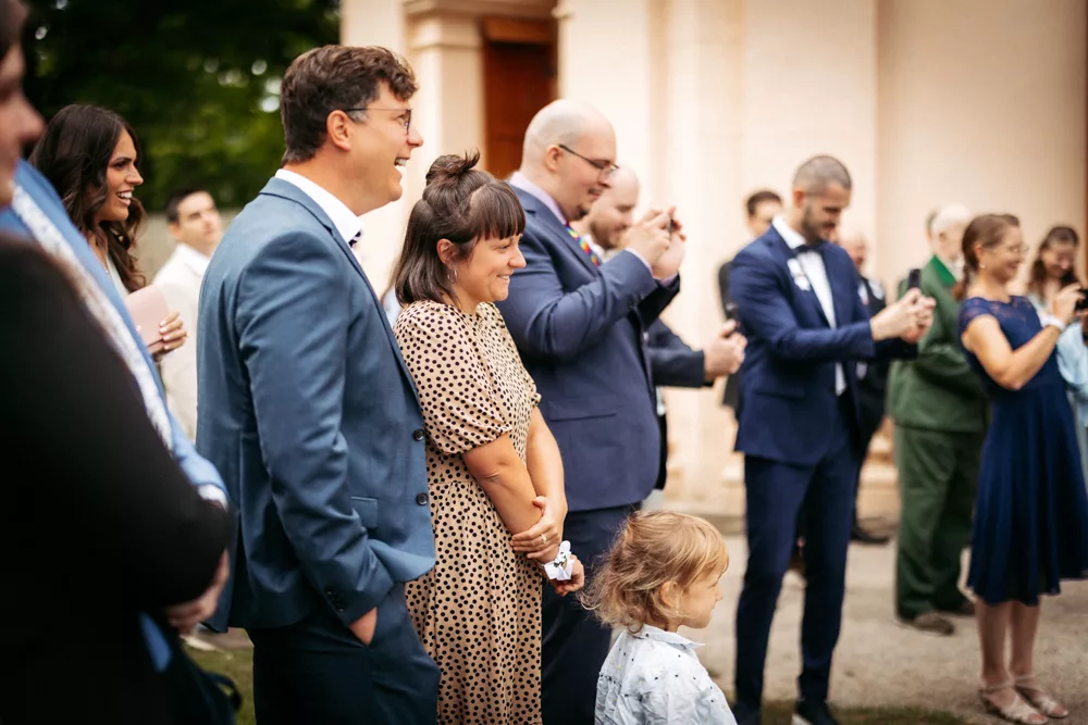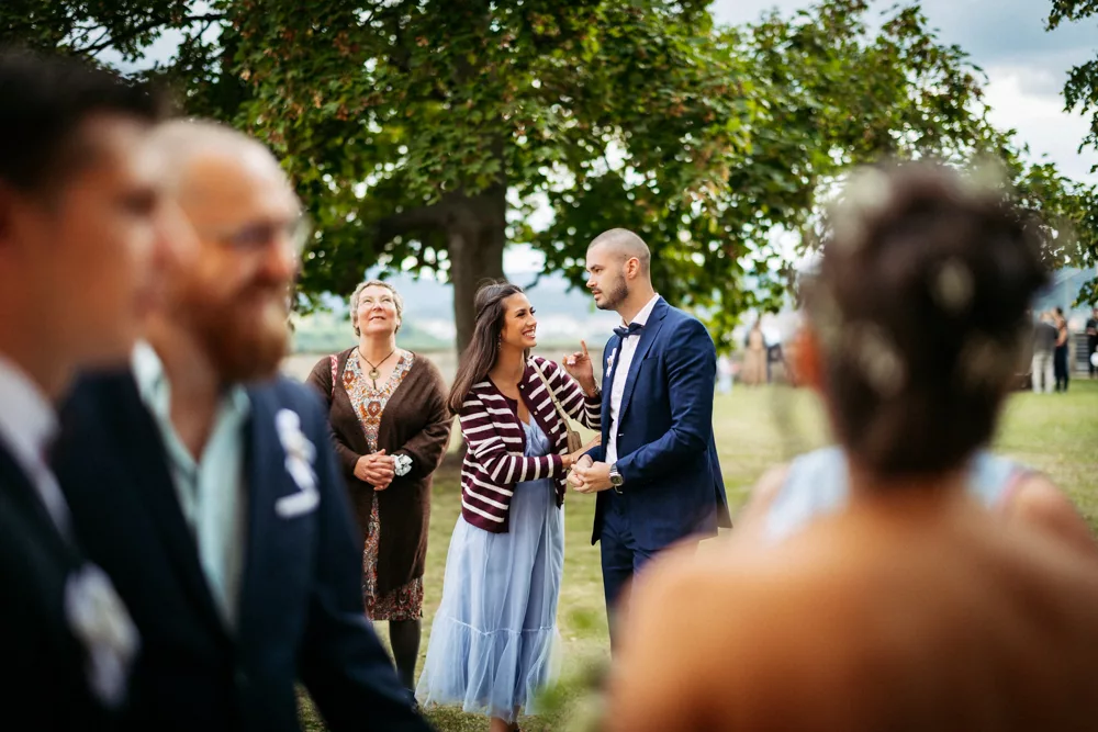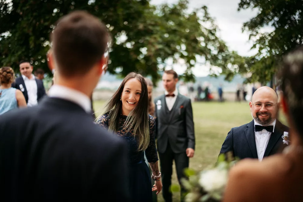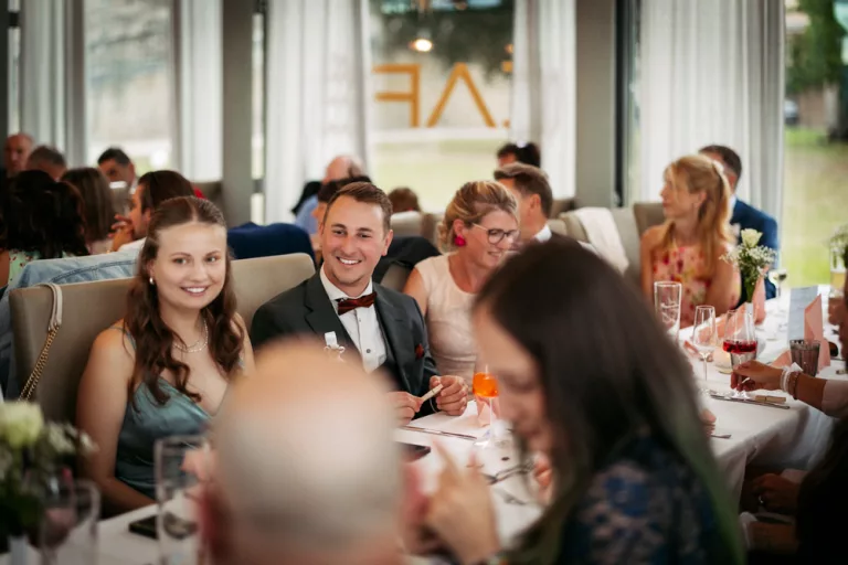 Nach der Trauung wurde gefeiert – und zwar richtig. Bei bestem Wetter verlagerte sich die Stimmung immer mehr in Richtung Sommerabend, Leichtigkeit und pure Freude. Die Gäste waren in Feierlaune, die Gespräche wurden lauter, die Gläser voller, das Lachen ansteckend.