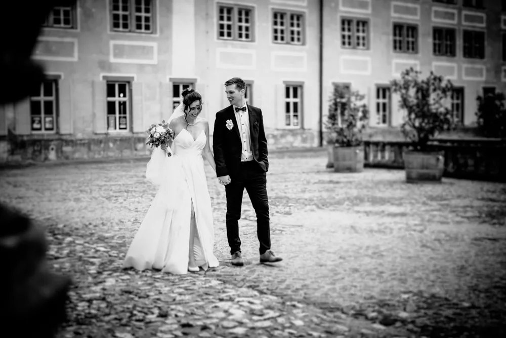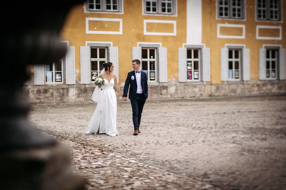 Zwischen den historischen Mauern von Schloss Heidecksburg, den warmen Augustfarben und dem weichen Licht entstanden unzählige ehrliche Momente: leise Berührungen, vertraute Blicke, ausgelassenes Lachen. Eine Hochzeit, die sich leicht anfühlte – trotz (oder gerade wegen) der großen Kulisse.