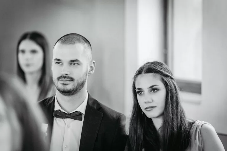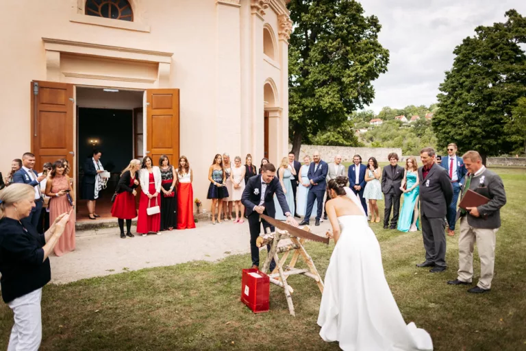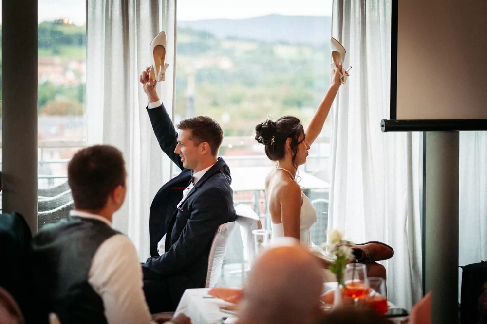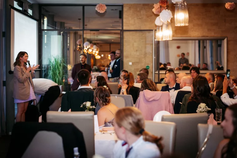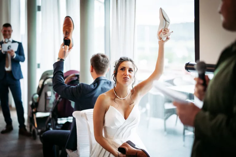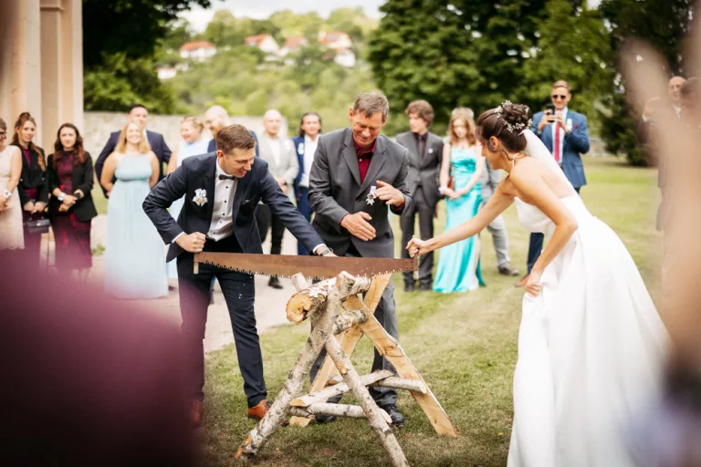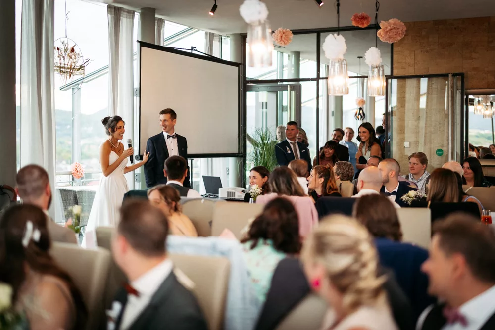 Die freie Trauung im Schallhaus war eines der absoluten Highlights des Tages. Sie wurde komplett selbst organisiert und von engen Freunden des Brautpaares gehalten – zweisprachig auf Deutsch und Serbisch. Genau das machte sie so authentisch. Keine Floskeln, keine Standardtexte, sondern Worte, die wirklich etwas bedeuteten.